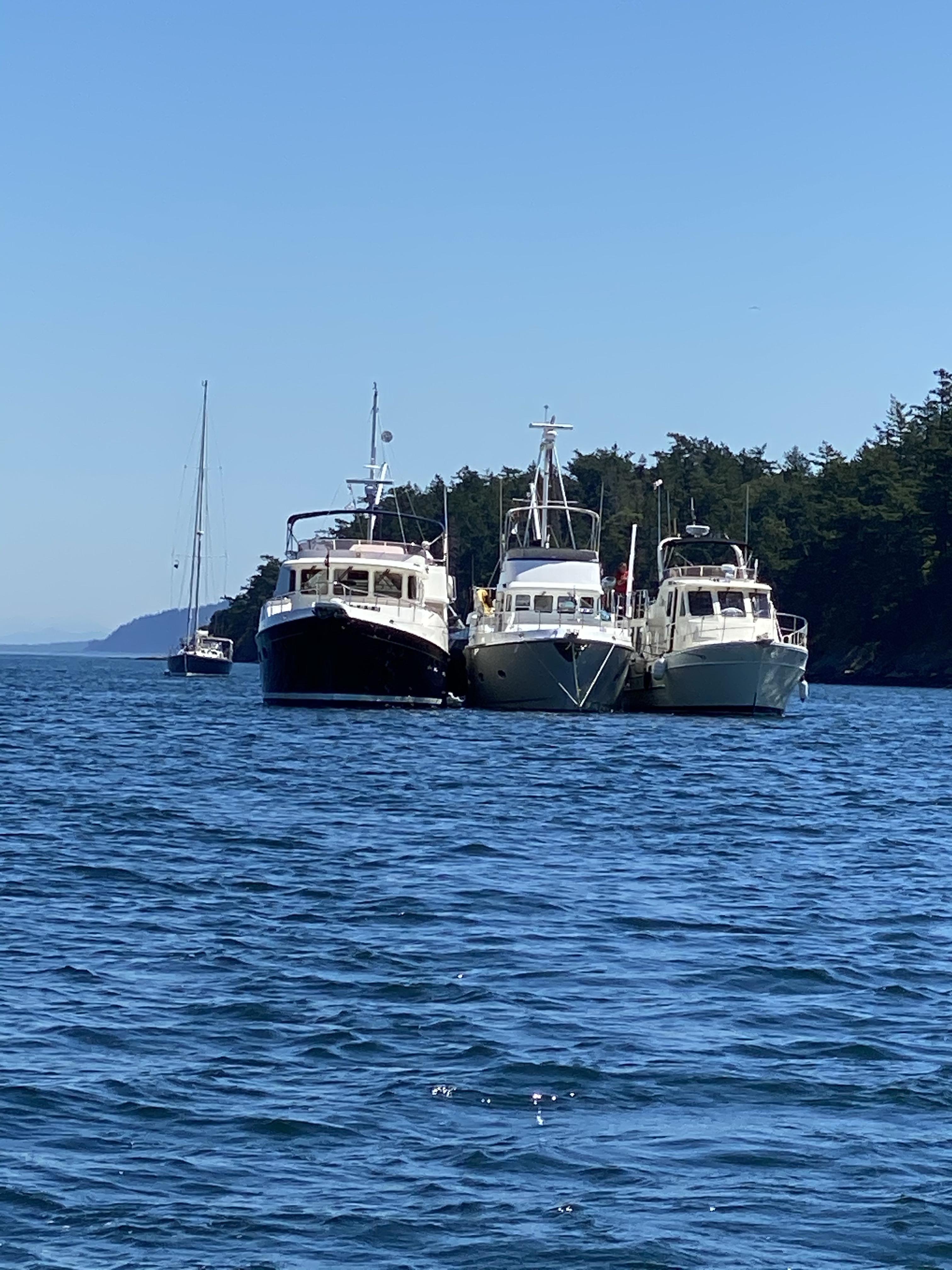 Buddy boating with good friends who have a 53 ft Selene and 43 ft North Pacific we enjoyed hiking, crabbing, 5 o’clock dinghy drink hour while exploring the islands and the general splendor of anchoring in a beautiful setting.