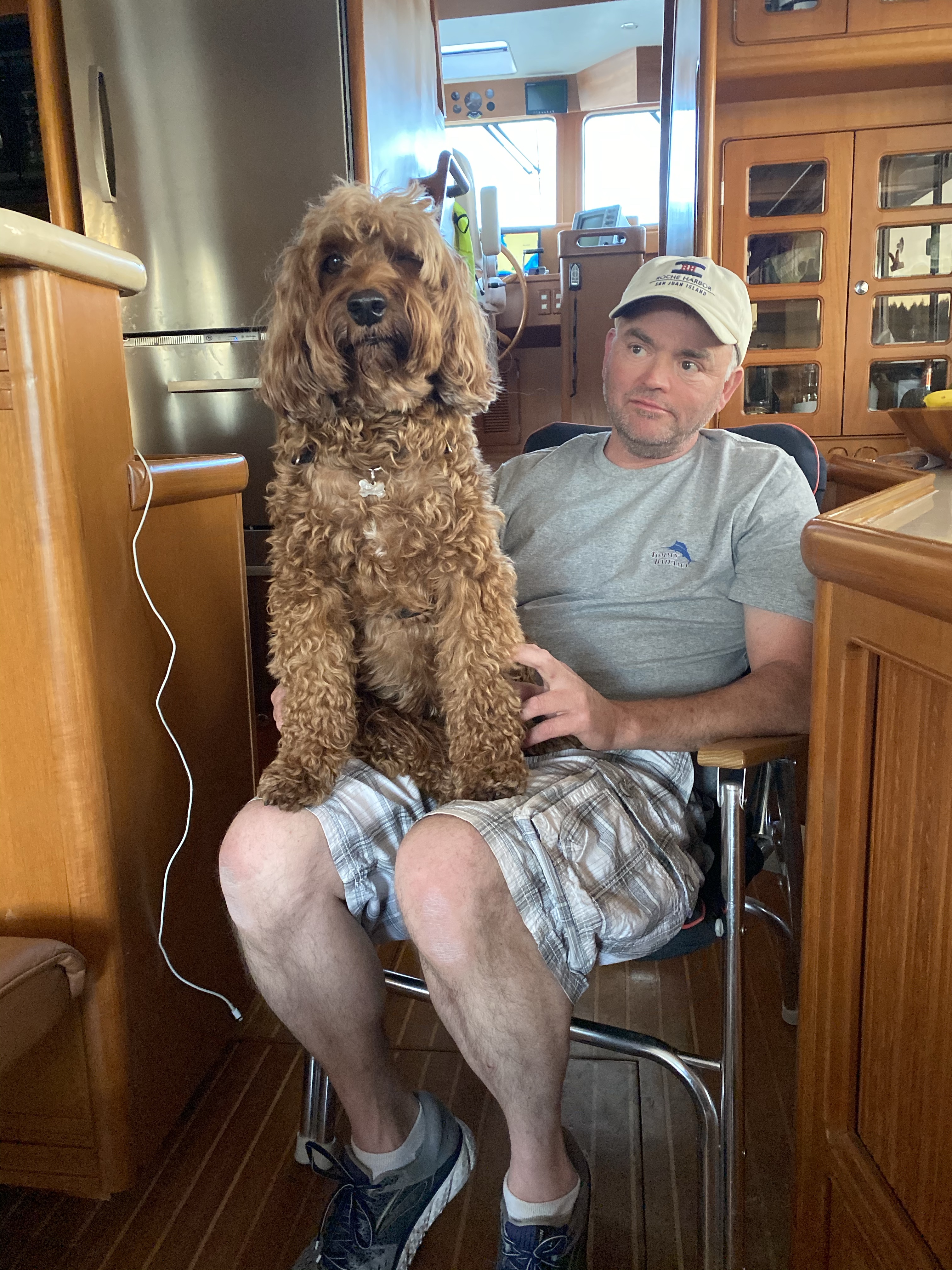 Upon returning home, Piper did not want the vacation to end as it took a fair bit of coaxing and treats to get her out of the dinghy!