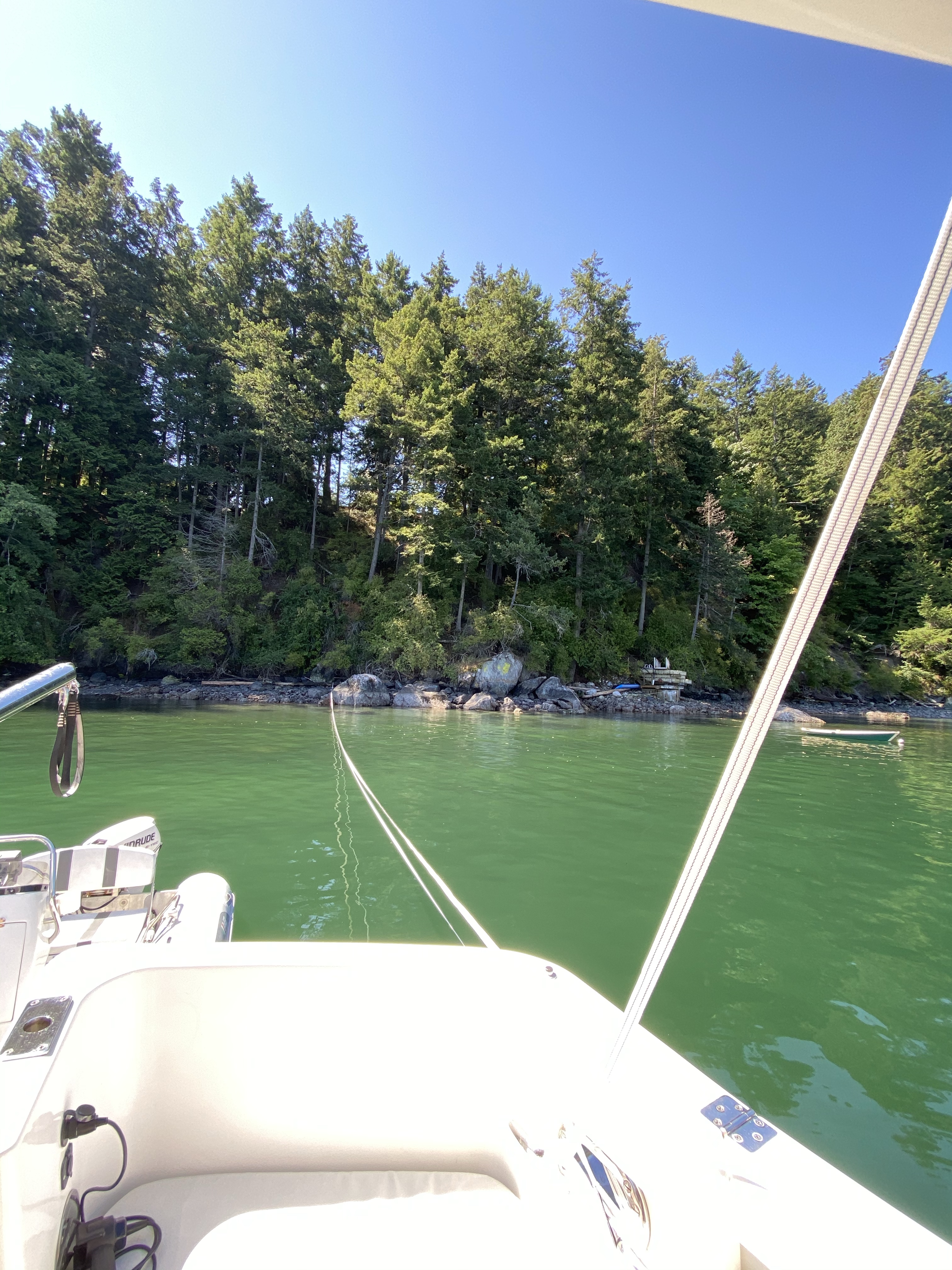 The following morning we broke off from our boating buddies who were heading to Garrison Bay. Our destination was a new to us anchorage, East Sound off of Orcas Island. Winds were forecasted favorably and we heard there was a pet store in town so with three doggos’s we just had to go for a visit. We tucked into Judd cove which can only fit a few vessels and stern tied. This was our first opportunity to utilize the very expensive and not just for looks, stern tie wheel. We have been toting around this stainless steel beast but never had an opportunity to try out out. It worked great, deployment and retrieval was very easy!