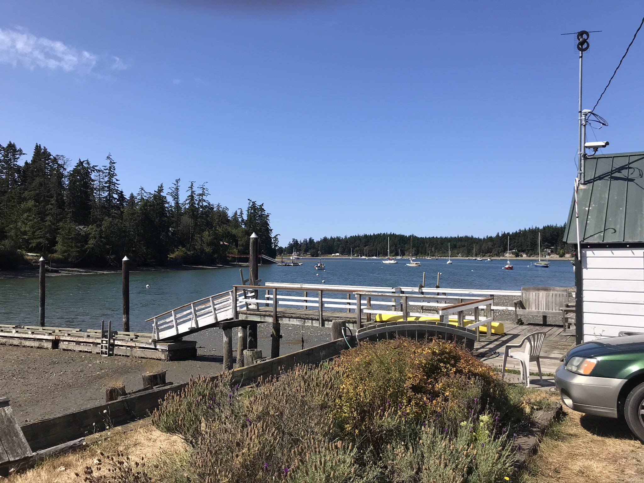 After settling in, we harnessed the girls and headed into town to explore. We found East sound charming and interesting and a destination we will definitely return to. We had the best prawn poy-boy sandwich that we have had in a long time and took a great walk through town to the airfield. The town has a nice little co-op where we picked up some fresh fruit and the fixings for a refreshing margarita after our trek. The fur-babies of course spent a fair bit of time in the local pet store where they each came home with a toy or treats. It’s a dogs life!