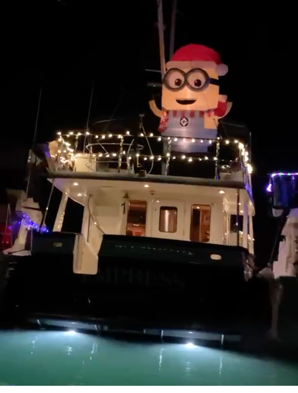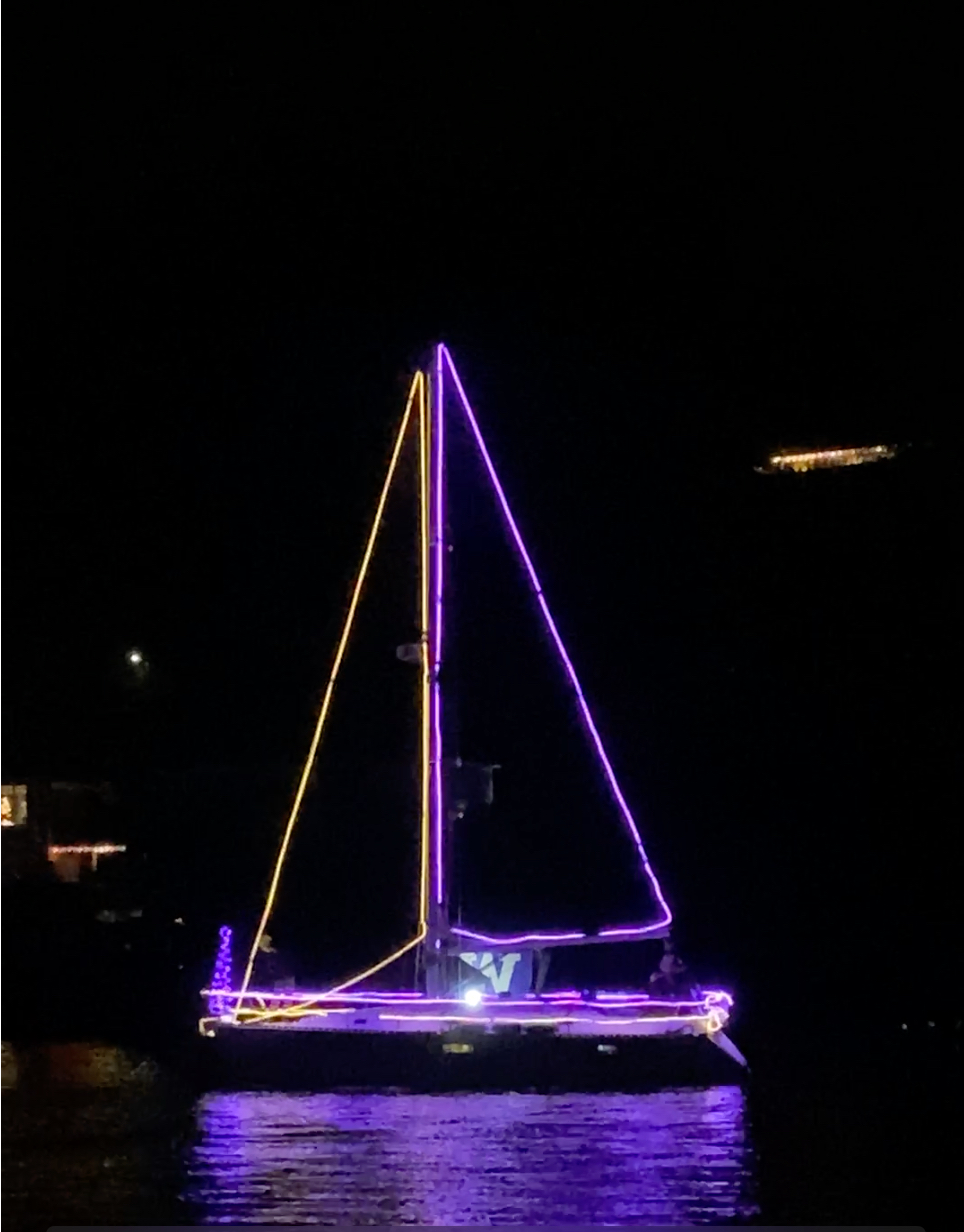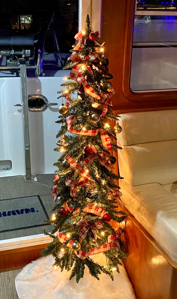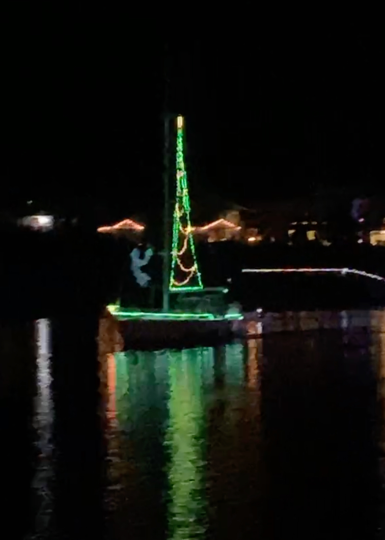 Admittedly we even added a few more light strings to R Lil’ Ship, a 4 ft. Christmas tree and a wreath above the anchor. It definitely created that little bit of extra cheer. Our good friends who we often boat with, really outdid themselves and if your a minion fan, an 8-foot Dave was a sight to behold! We had a really good time and the weather which was forecasted for 90% rain all weekend was actually beautiful. Crisp, cold and perfect for a boat parade. In past years we experienced heavy fog and heavy rains, making the parade a bit tough to see, but not this weekend, Mother Nature was on our side.