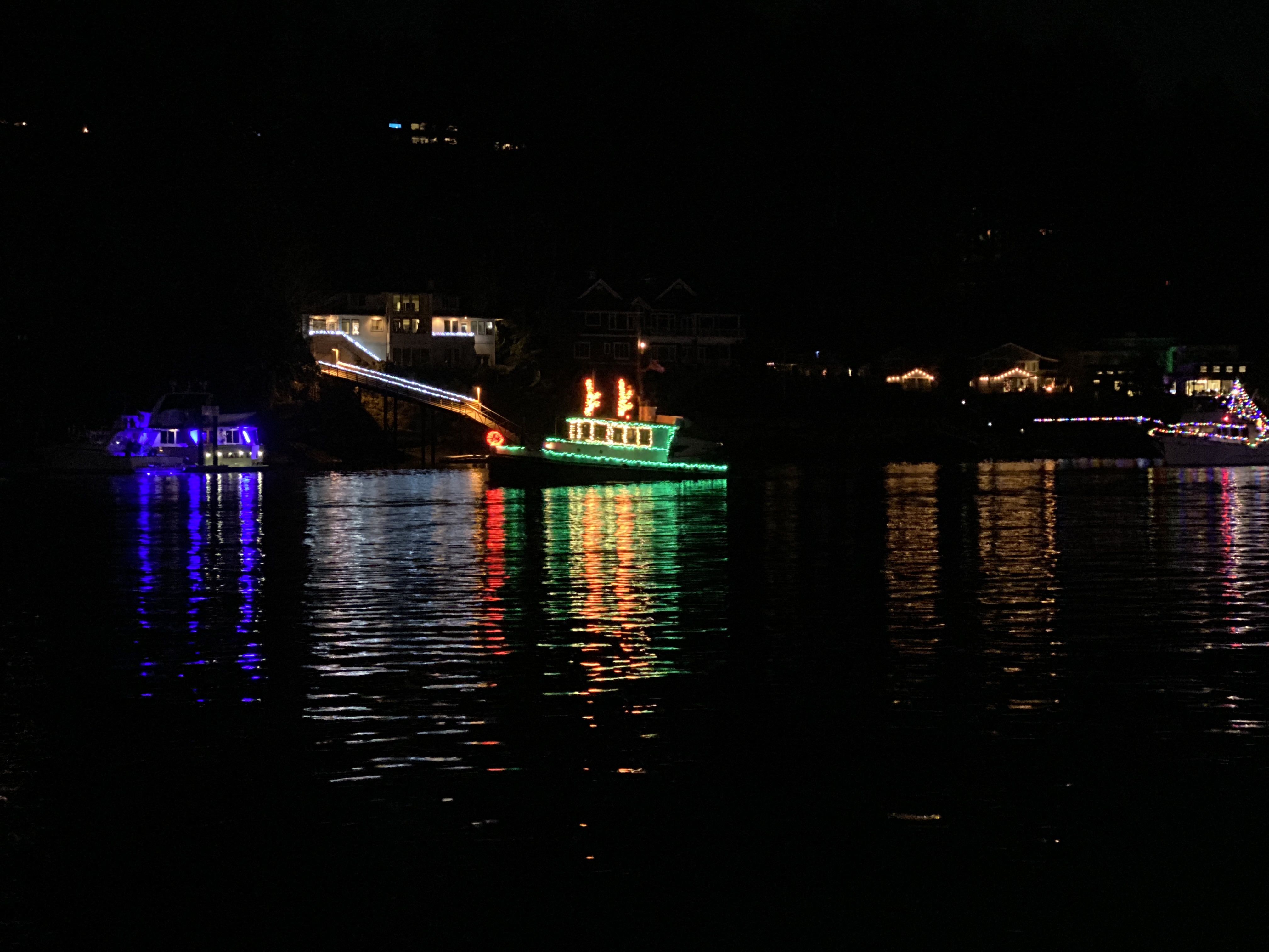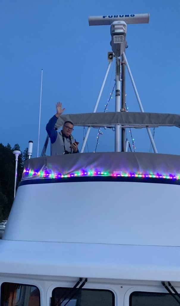 This will be our 4th year attending the Gig Harbor lighted boat parade. Perhaps because this crazy covid year has kept folks in lockdown, there were more lighted boats and parade watchers than in any of the previous years. We heard one estimate was that there were at least 50-parade boats in attendance! Folks really went all out and even those that were not in the actual parade seemed to go the extra mile with decorations, lights and festive holiday music.