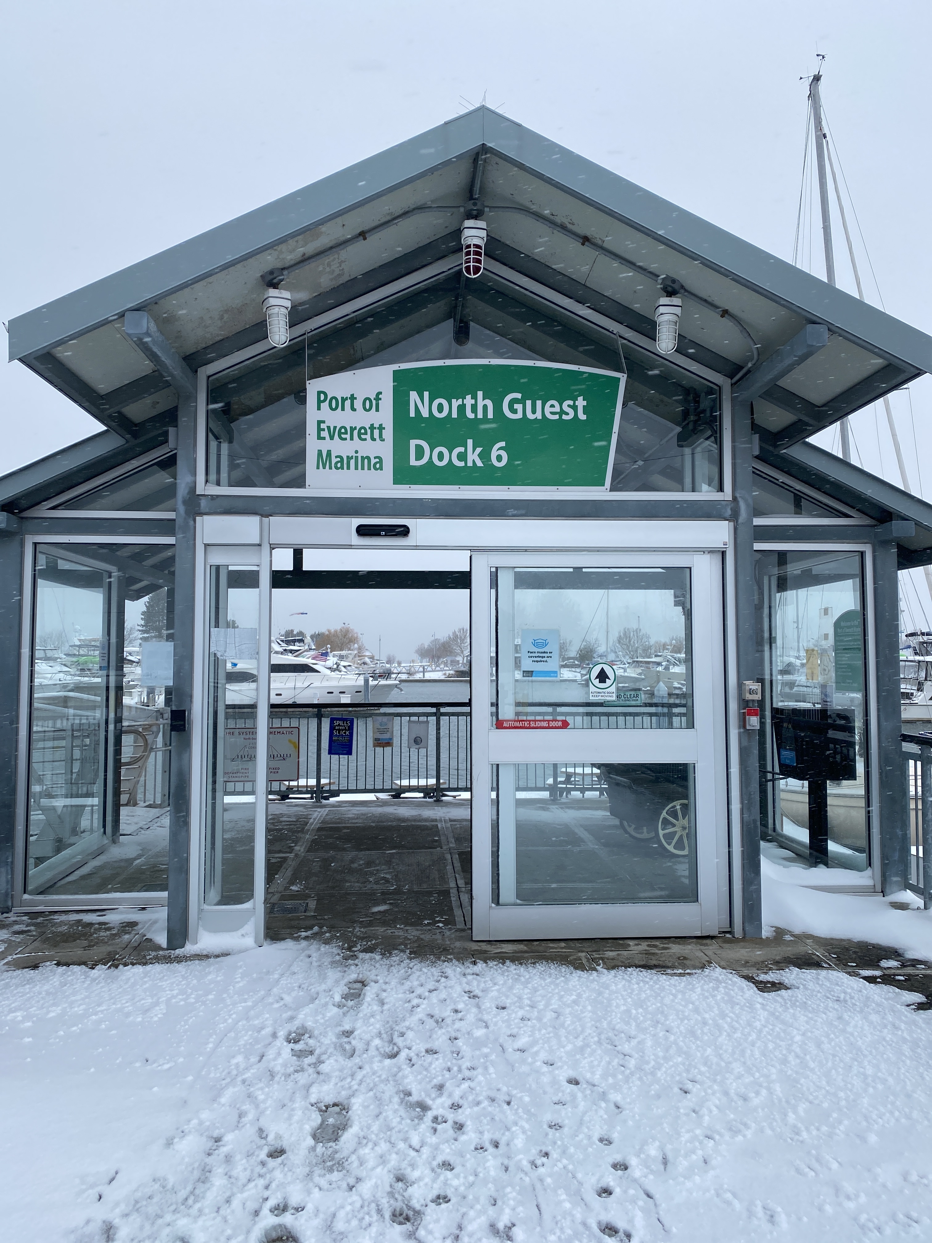 That being said, we didn’t really get to explore Everett as much as we would have liked. It was very cold and windy and we couldn’t stay out to long with the dogs. What we did see though was enough to make us want to return! We learned that Everett has one of the longest jetty’s across from the marina with a great beach, something that is very appealing to us in good weather with three exuberant dogs. The Marina itself is expansive. There seems to be a few good restuarants nearby, one Italian restaurant looked particulary appealing, however; they did not have any reservations due to the 25% capacity rule as we are still all working through with covid. There is a West Marine close by, Anthony’s which is always enjoyable and Safeway within walking distance, just a little over a mile away. We did end up braving the elements and trudging to the Safeway in a foot or so of snow so we could satisfy our sweet tooth!