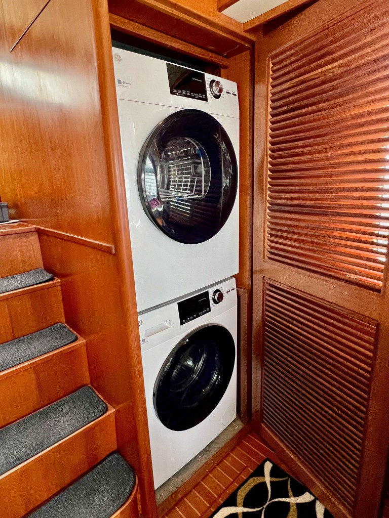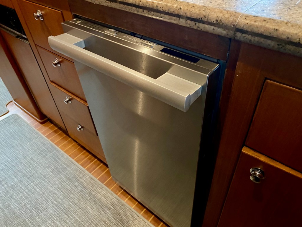The next projects consisted of the W/D replacement and dishwasher replacement. Again, original appliances and after alot of effort we couldn’t get either of these working and decided to go with new instead of repairing. We replaced the old stackable washer/dryer with a full-sized GE individual stack washer and dryer combo set We chose this particular model not only because it fit, but because it was a vented system and keeping moisture out of the interior is always a plus. We chose a Miele dishwasher after seeing the one on N4711 Amadeus who graciously gave us a tour of their boat when we were both tied up to the public dock at Bainbridge Island. It took over 6 months to get the dishwasher but it has been definitely worth the wait. We love both appliances and once we are living aboard full-time these creature comforts will surely make our lives a little easier! We have to give a big shout out to our good friend, Todd Mackey who helped us with these replacement projects.