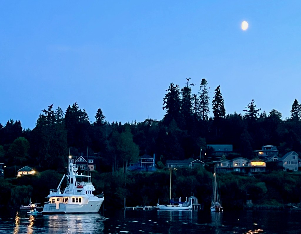 In looking back at the first half of the year it seemed like we just worked, worked, worked, but we did get in a couple of fun weekends at a couple of our favorite local destinations and when we couldn’t leave the dock, we jut did staycations. We cruised to Gig Harbor anchoring with good friends, walking the dogs, visiting the local pet store and of course the Tides Tavern. We enjoyed dinghy cruises around the harbor while admiring the beautiful homes along the shoreline and weaving our way in and around marinas to look at boats. With the end of covid, we were finally able to go to the Kenny Chesney concert in June that was postponed from 2020. We moored in Bell Harbor as we have done in years past, but it was shocking and a little disconcerting to see the differences in Seattle before the pandemic occurred. The waterfront strip still had many tourist as the cruise ships are now back, but it was very obvious how covid, homelessness and the Summer of Love adversly has impacted the downtown area. Still, we walked the waterfront and had a great time at the concert.