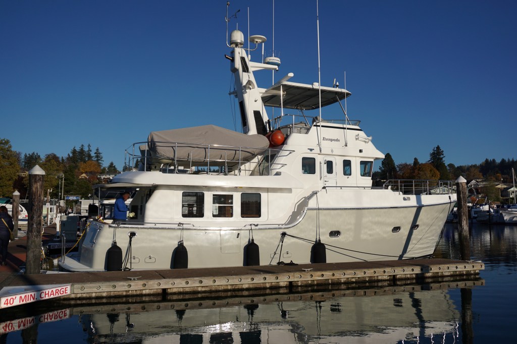 We brought Escapade home from Anacortes mid-January working weekends from January to April fixing up her up. As mentioned in previous blog posts, we added diesel heat, relocated the lithium batteries, changed lighting fixtures, experimented with stripping woodwork in preparation of eventually doing more refinishing in the salon and pilot house areas. We patterned and installed new carpet and aquamat floor coverings and had the pilot house cushions redone. We would have liked to do more before our first planned trip to Victoria, B.C to attend a Nordhavn Owners rendezvous, but if you are a boat owner, you know that boat repairs/upgrades never go as planned. Usually many wrenches are thrown your way and whatever timeframe you initially planned should really be doubled and sometimes triples.