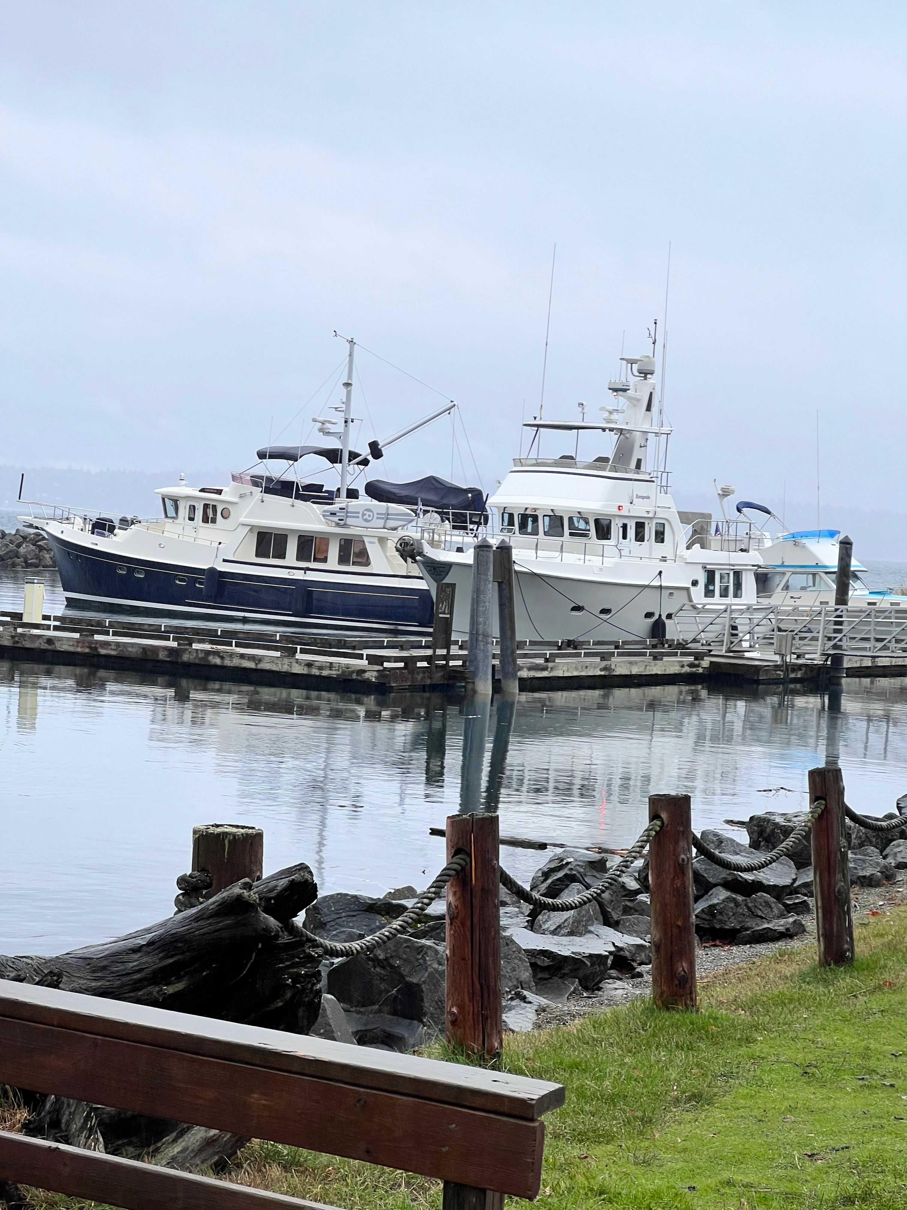 October was the start to fall/winter boating. Escapade is just as comfortable to cruise in during the winter months as in the summer. With our diesel heater and heat pumps, once the boat is warmed up, it is cozy and comfortable. Winter crusing is also great for getting into places like Blake Island or on public docks that are always jam packed in the summer months. We do anchor in winter months, but with the three dogs, it means donning the fould weather gear (for humans and doggos) to dighy ashore. The dogs don’t mind winter cruising, but they could do without the slush suits and rain jackets which help keep them clean and dry.