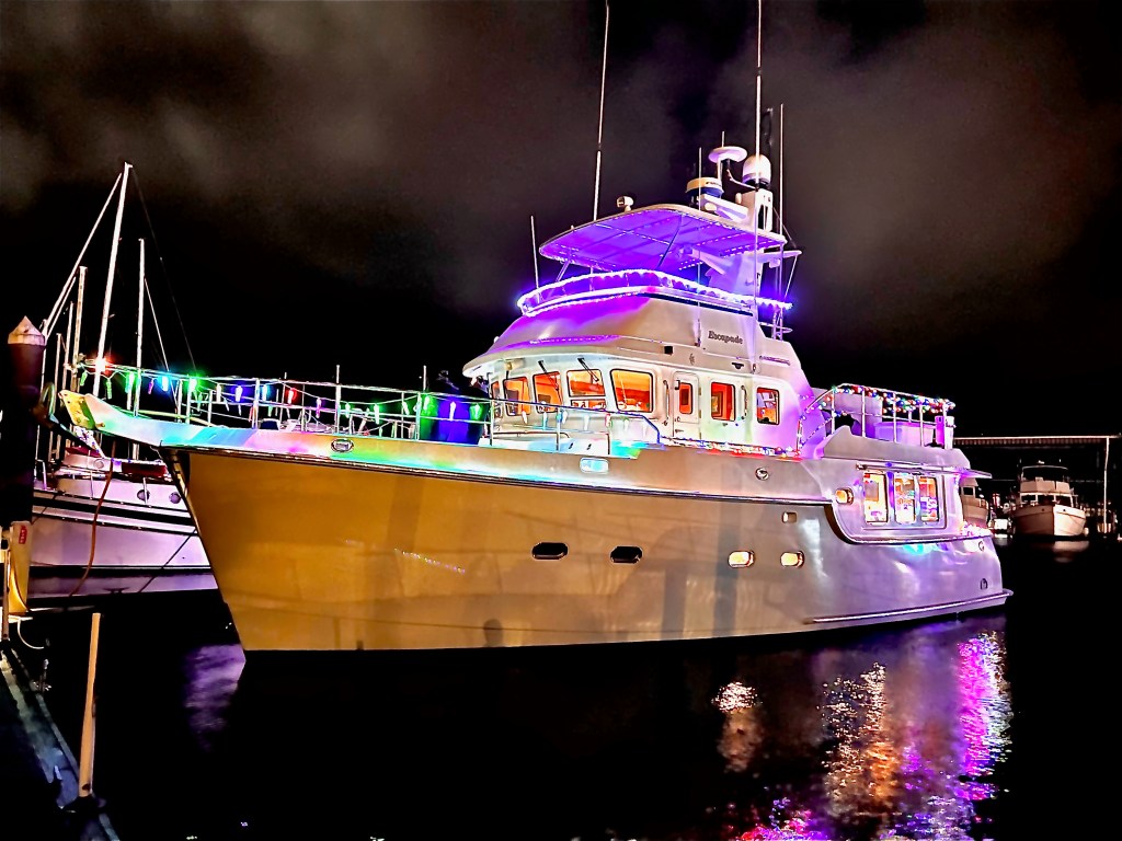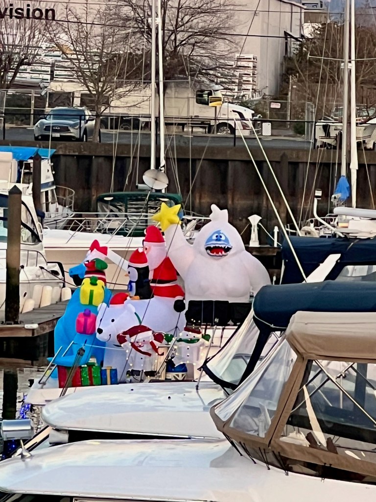 The end of the year is now upon us. Its December and the weather is most definitely cold, wet and rainy. But we don’t let that deter us at all. We pull on the rain gear and heavy coats and cruise to Gig Harbor for another years’ lighted boat parade and then to Foss Seaport for the Tacoma Yacht Club Lighted boat parade. We decorated Escapade, put up our little tree and added the new ornament we purchased from the glass museum while visiting Dock Street. Then we prepared to ring in the new year. Kingston was our destination for New Year’s this time as we promised Ray, the harbormaster, we would come and see his holiday lights. Wow, what a great job! Thousands upon thousands of lights lit up the common areas of the marina to create a christmas nautical wonderland. I cannot imagine the time it takes to put this type of display together. Ray is one of the best harbormasters we have encountered and he truly loves his job as evidenced by the work he puts into this marina. If you have never been to Kingston around the Christmas, it is worth the trip.