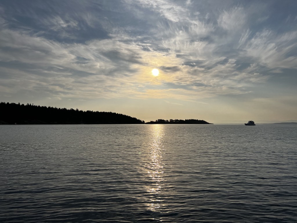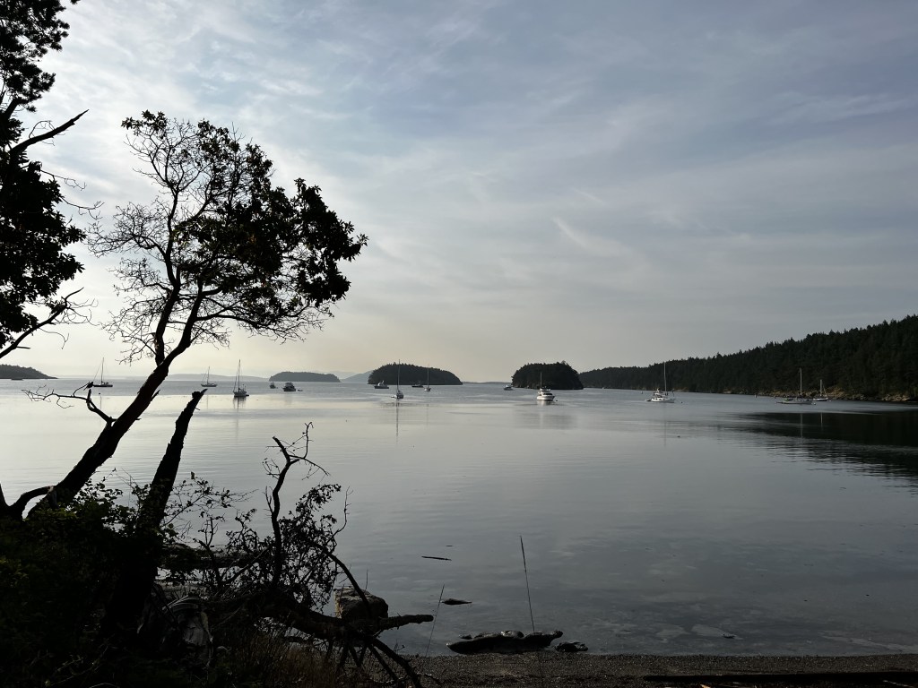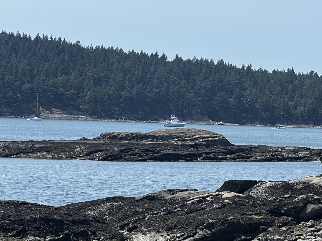 Once we arrived at Sucia Island, we decided to anchor in Echo Bay as there were not any forecasted east winds and the bay is very large. We were also told that Echo Bay had the best cell/internet service with T-mobile. After finding our spot and setting our anchor, we proceeded to take the pups to shore to stretch their legs. The anchorage was very busy upon arrival and the beach was littered with dinghys. Many folks were camping in tents and had kayaked to the island.
