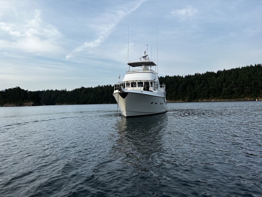 The next morning we set up the boat for standard rough seas as the forecast called for 10 knots of wind, nothing we haven’t experienced in the past; however, once we got to Pt. Wilson, the wind kicked up and was blowing 20-25 knots on a flood tide. The chop was 2-3 seconds and we were hobby horsing and bouncing around. We should have probably prepared better as we still had some items flying around and opening up, in addition to the dogs catching air. Consoling them whilst bouncing about in 8-9 foot seas was impossible! Piper, our youngest got sick and cleaning up that mess while scooting around on my butt, I ended up feeling a little green too! After about 45 minutes the conditions improved but it was a very long 45 minutes!
