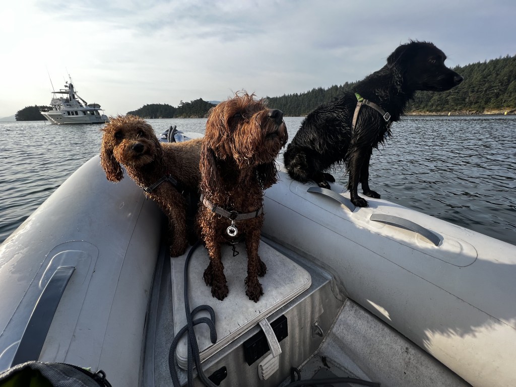 We spent 4 nights at Sucia. On the 4th, we could hear some residual booms from afar, but nothing loud enough to rustle or scare the dogs. It was a great 4 days, we hiked almost the entire island, the pups explored and played in the water and by the 3rd of July, most boaters departed leaving only a handful of boats anchored. Several had dogs and I suspect they had a similar goal.