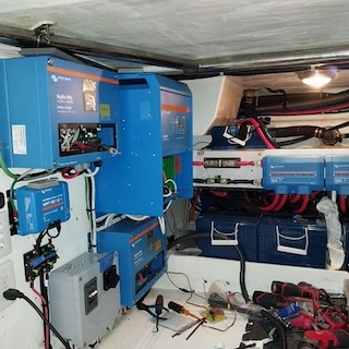 The first week of being a liveaboard was a little harrowing. Escapade had been in for repairs and upgrades which included a new muffler/sound dampener/heat blanket, bow thruster, engine mounts, shaft alignment, props tuned, new inverter, cutlass bearings, electrical wiring cleanup, backup stand alone charger, flybridge canvas replacement, new bug screens, crane circuit board rebuild and stabilizers rebuilt with new control panel, circuit board and rams. The day our house closed is the day we were able to get the boat back! Things just take 3 times longer than anticipated on a boat!