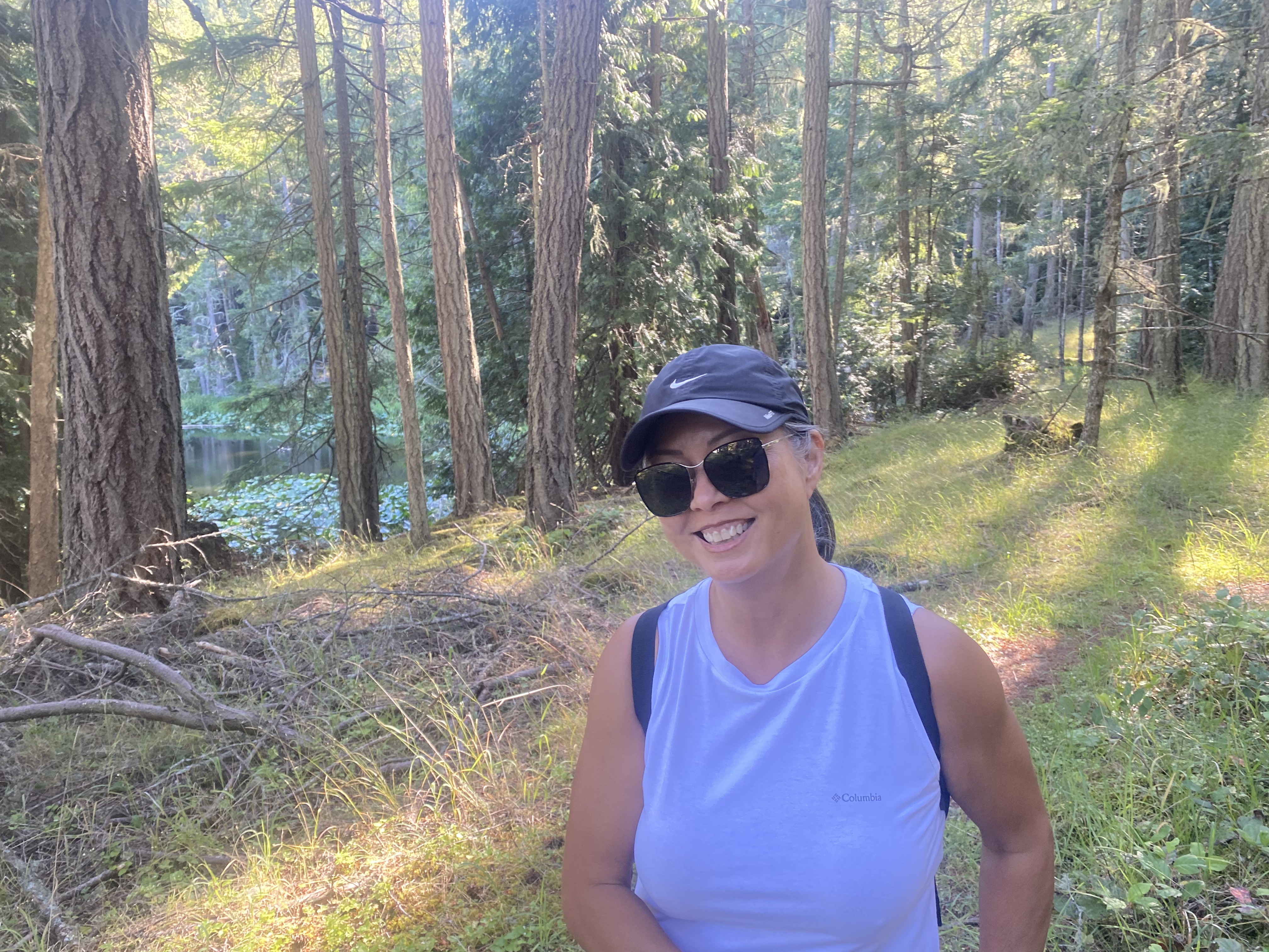 The next morning before departing Bedwell Harbor we decided to go on a short hike. What was to be just an easy out and back hike to a lake turned out to be much more technical than expected, traversing steep inclines and declines along the mountainside with our three pups. We eventually made it all the way around the lake which was very scenic and we were proud of ourselves for not turning back, a thought that popped into my mind several times!