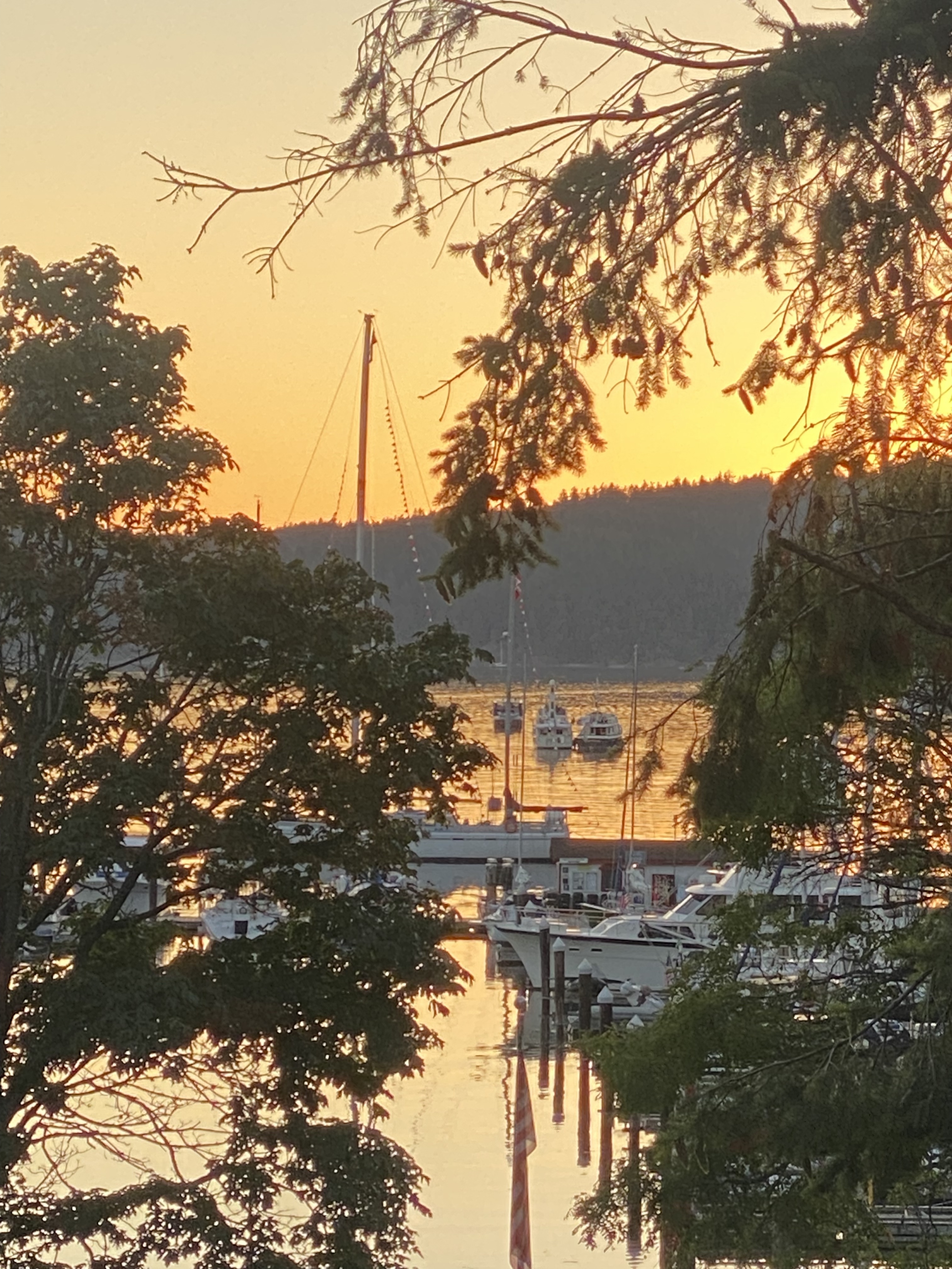 While anchored in Bedwell Harbor we took our dinghies to Port Browning and walked into their little town for a few grocery items. To our surprise there was also a nice cafe, nursery/pet supply store, nail shop, liquor store, boutique, hardware/houseware store and probably a few others we didn’t get to see. We enjoyed a takeout lunch and then made our way back to our boat and enjoyed a beautiful summer sunset.