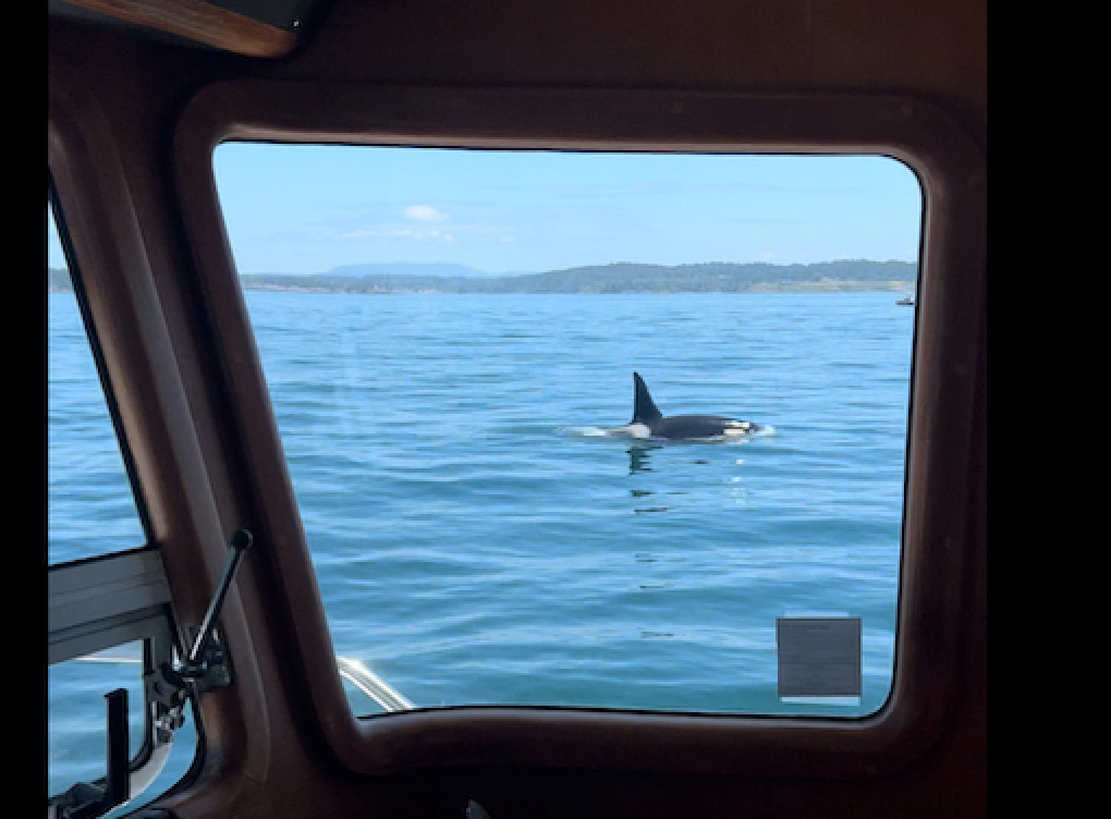 On our way up to the San Juan Islands after leaving Port Ludlow we were blessed to see resident orcas and one swam right in front of Escapade! Later after arriving in Bedwell Harbor and setting down at anchor, 2 humpback whales put on a show for us. Our 3 dogs had never seen whales before so they were also in awe of these magnificent creatures. What an exhilarating way to start out the trip!