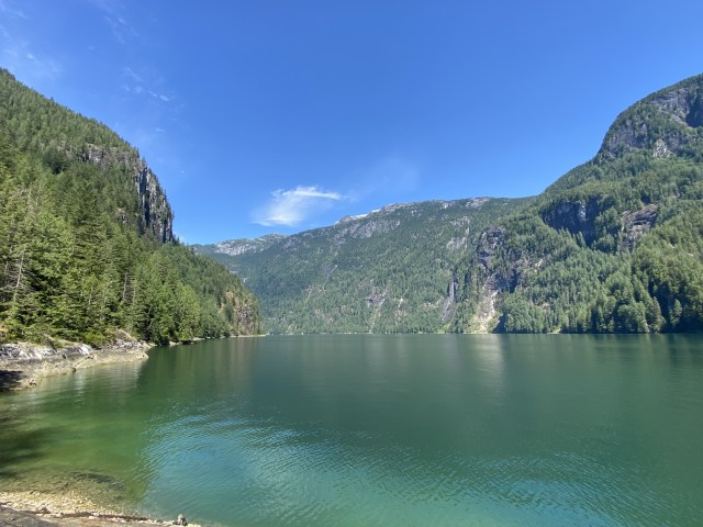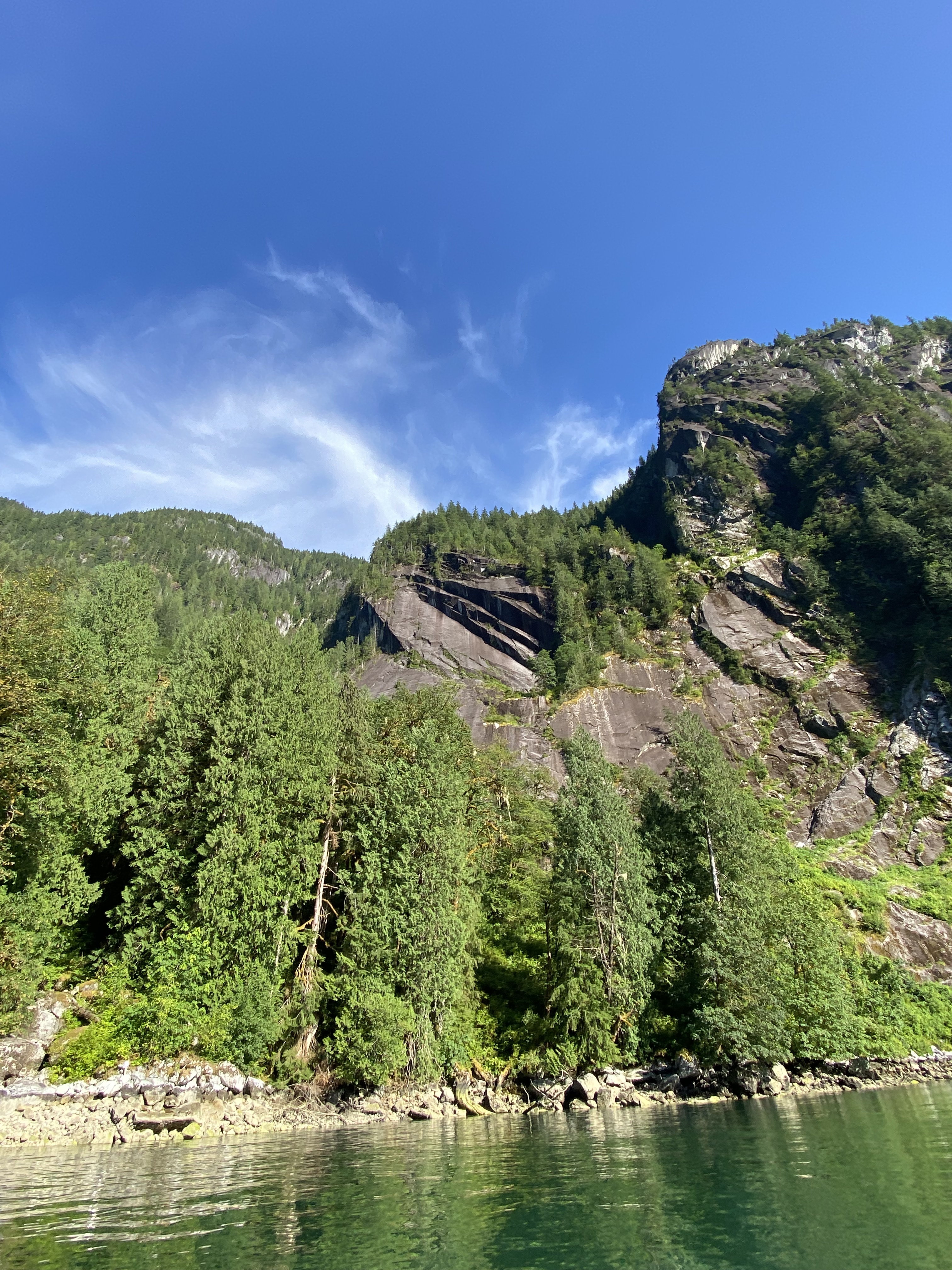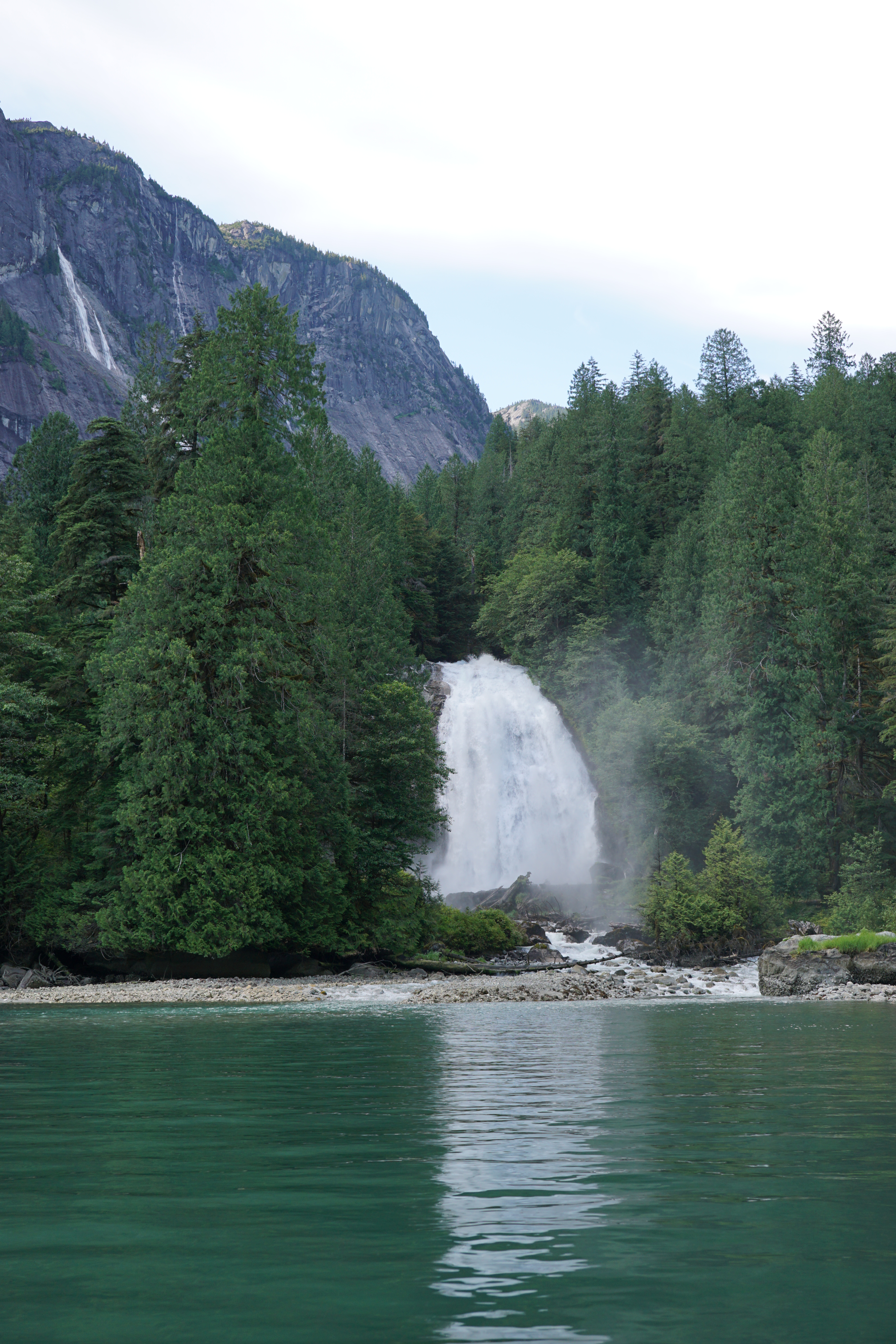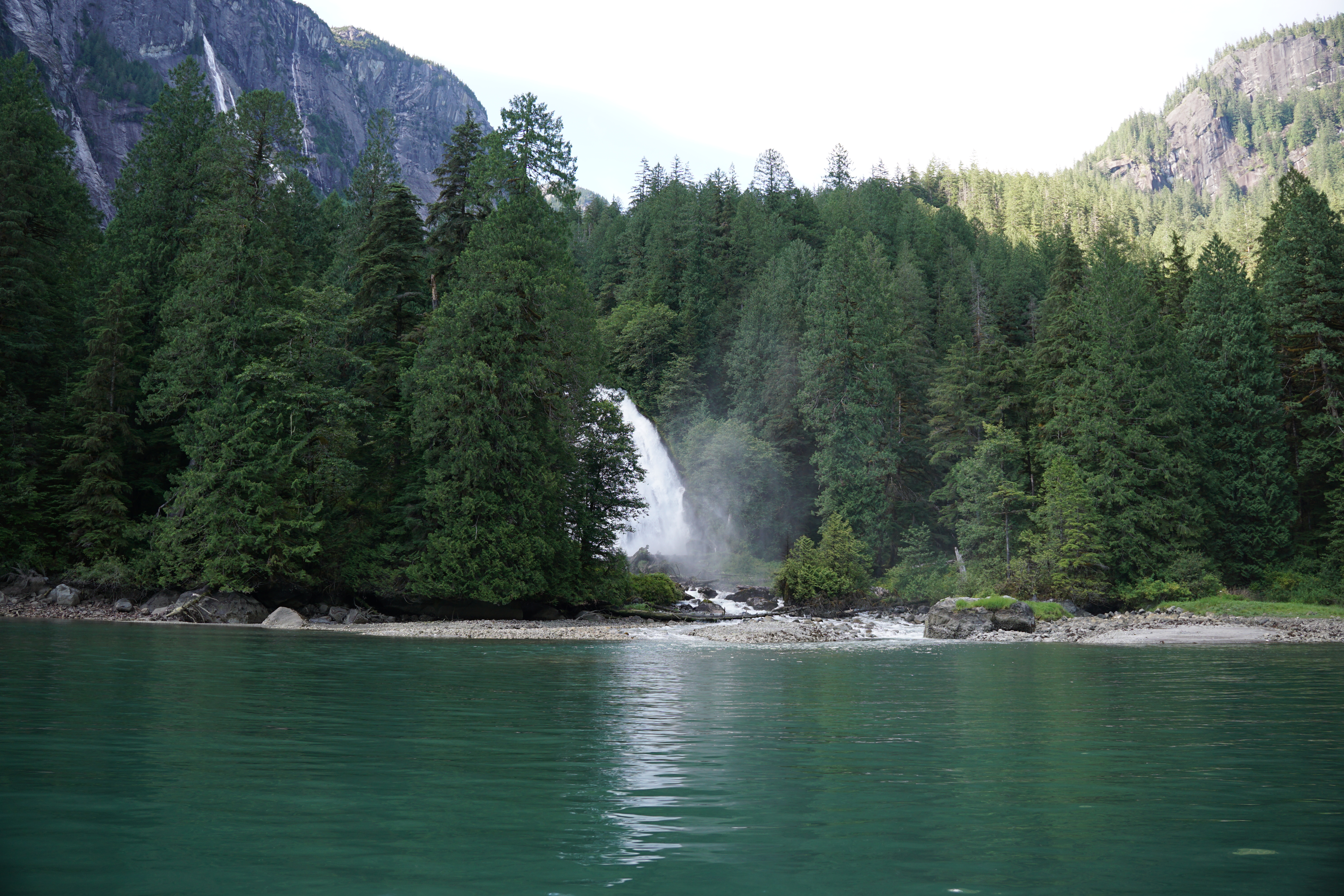 Arriving to the entrance of Malibu Rapids at the ebb slack so that we could safely transit between the small islands and rocky shore we could start to see the immense mountains that extend up to 3000 feet high! Once through the rapids we cruised about 4 miles to Chatterbox Falls. All the way in we were in complete awe of this beautiful place.