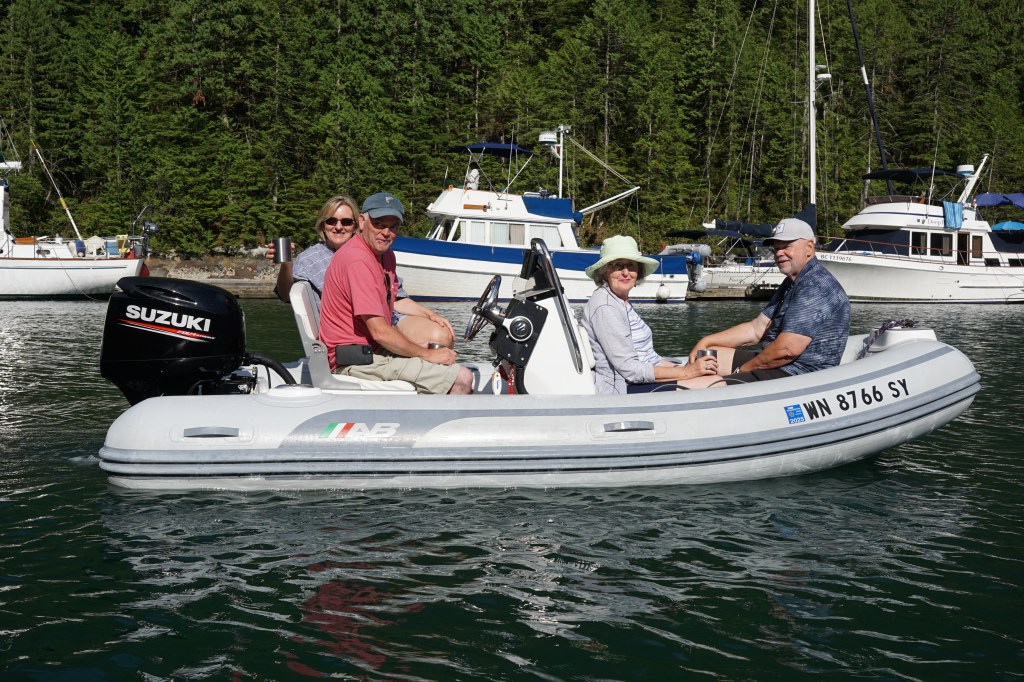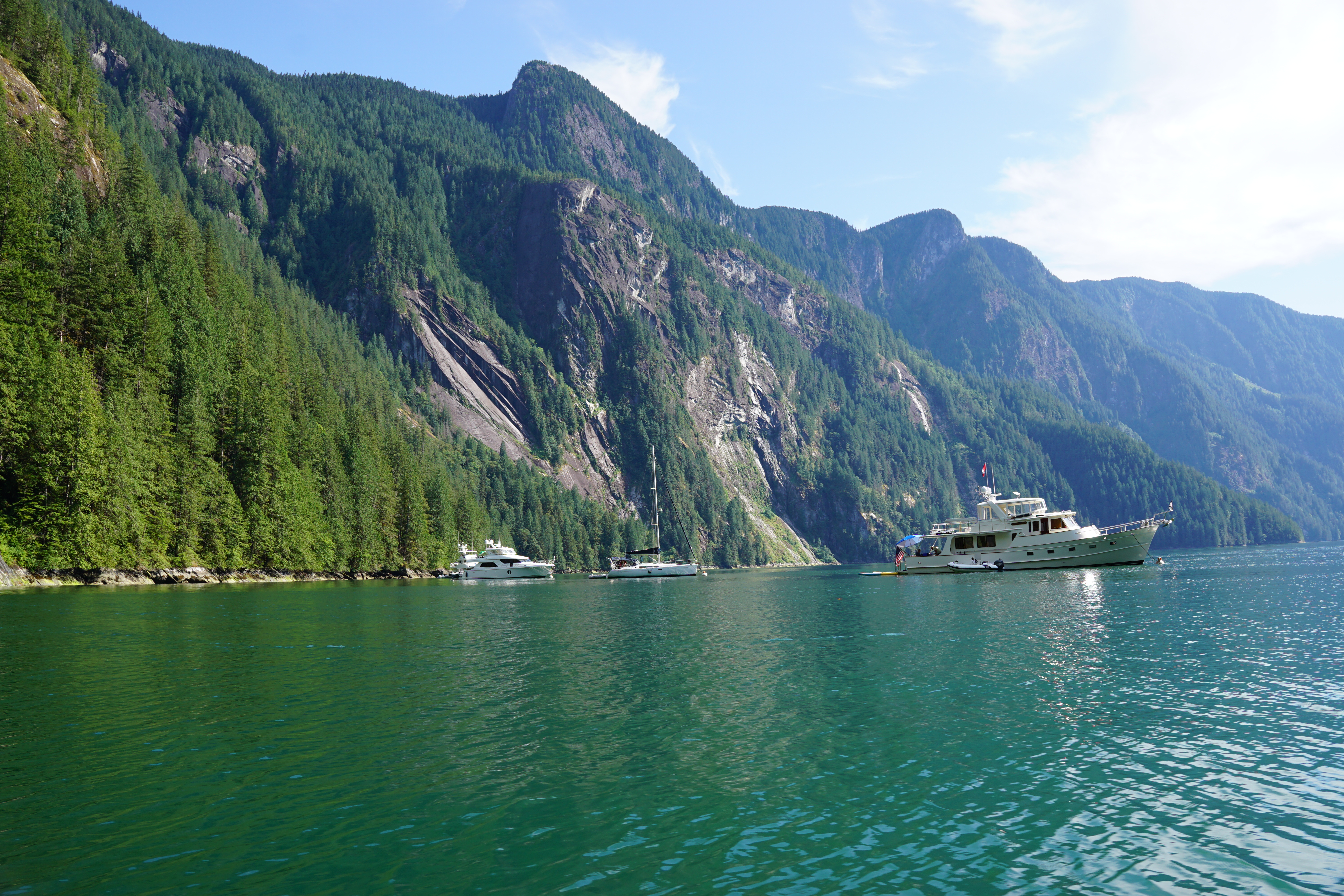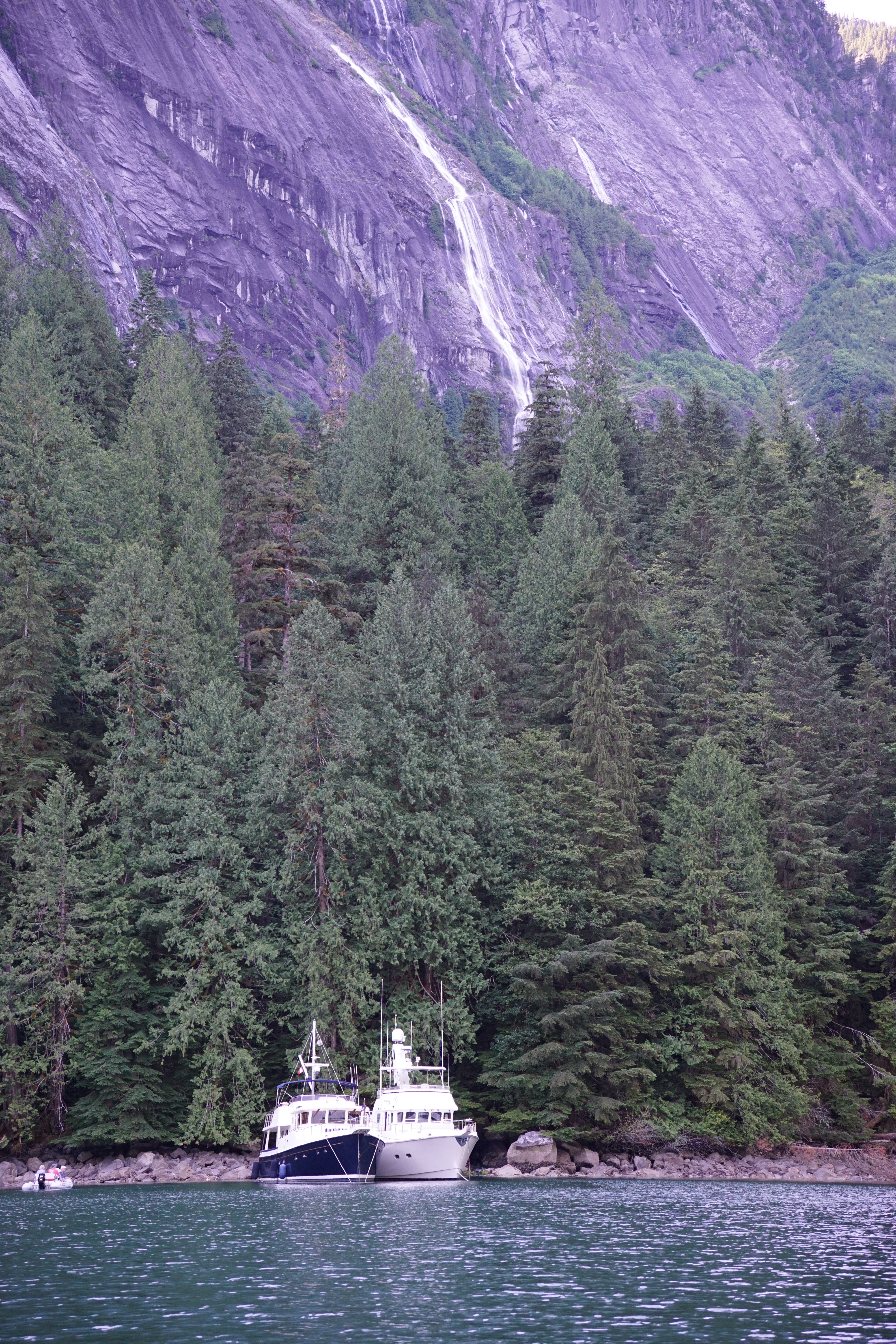 Cascading waterfalls and granite walls so steep and so high it is barely believable. Looking up to the very top of the mountains reminds one of how tiny we really are in this big beautiful world. Since depths in the bay can range between 500-1000 ft. deep, we had to stern anchor to shore. Luckily a very nice couple in a dinghy helped us stern anchor and our buddy boat rafted off our starboard side. We later learned that the good samaritans were friends of our friends from the Tacoma Power Squadron.