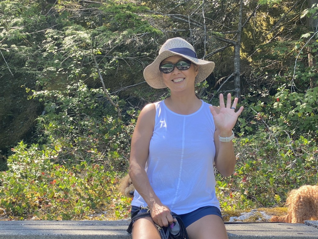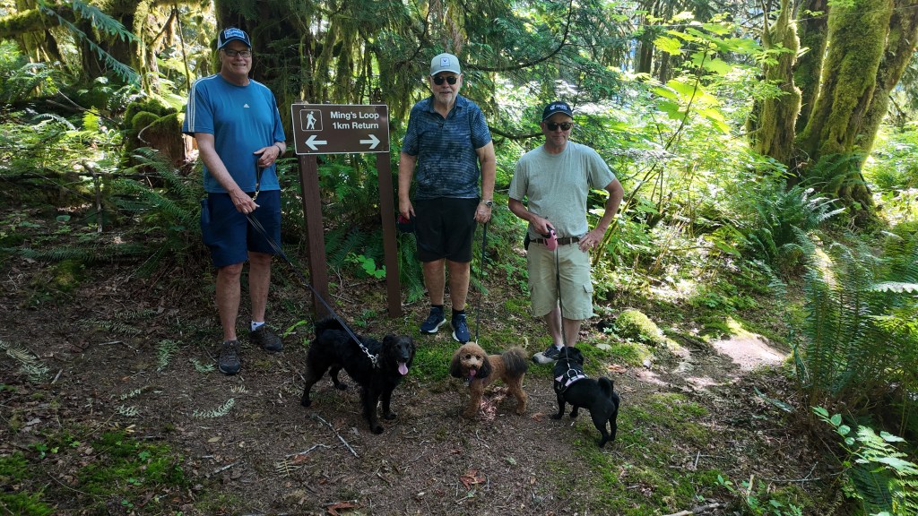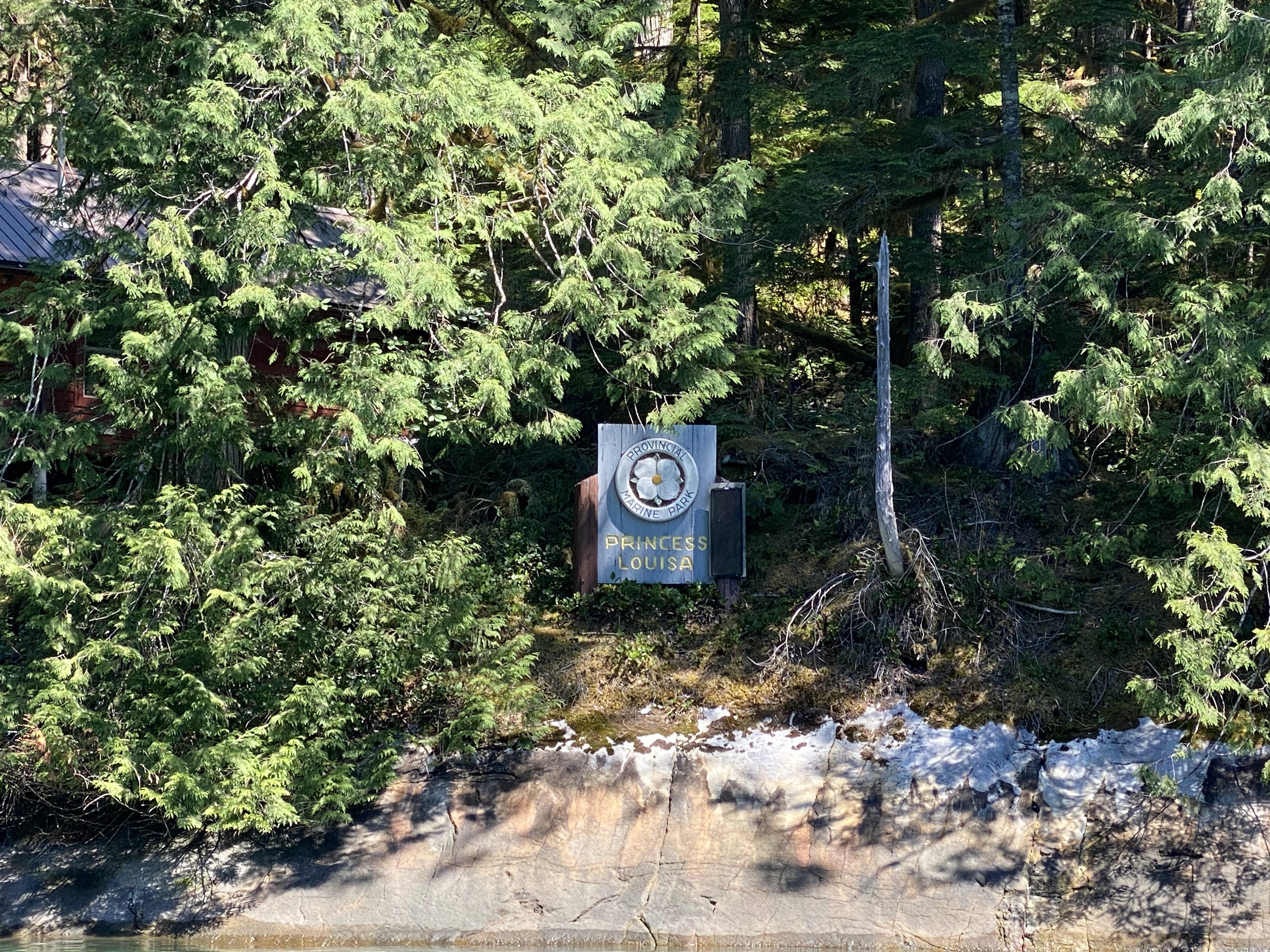 We spent 4 glorious days exploring the area, hiking and swimming. Daily we would take our dinghy’s and cruise alongside the granite walls getting up close to the smaller waterfalls and perusing the interesting rock formations. We would hike McDonald Island, (named after the man that built trappers cabin) and Ming’s trail with the dogs. Ming, as it turns out, is the park ranger that has worked at Princess Louisa for over 20 years. She cleared and created the trail and currently maintains it so that boaters visiting the island can enjoy an easy 1 kilometer walk.